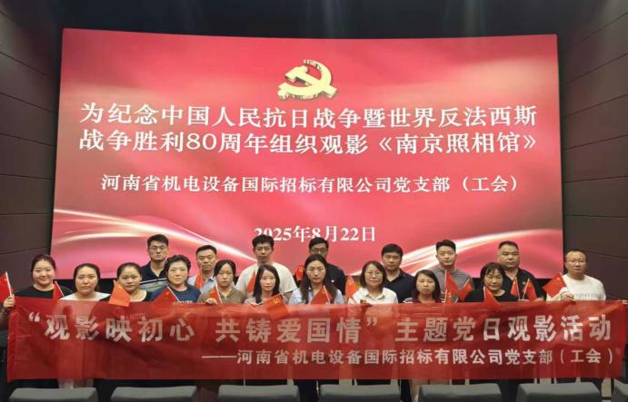 河南省機(jī)電設(shè)備國際招標(biāo)有限公司黨支部開展“觀影映初心 共鑄愛國情”主題黨日觀影活動